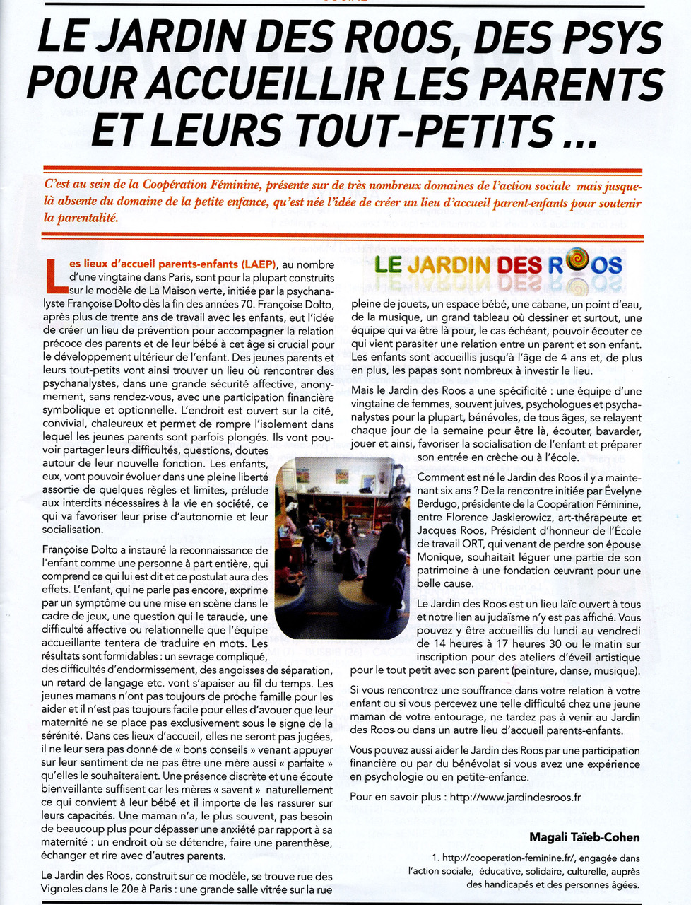 Ce chabbat, à l’occasion de notre office « erev shel yéladim », nous accueillerons les responsables du Jardin des Roos, une « maison verte » façon coopération féminine.
