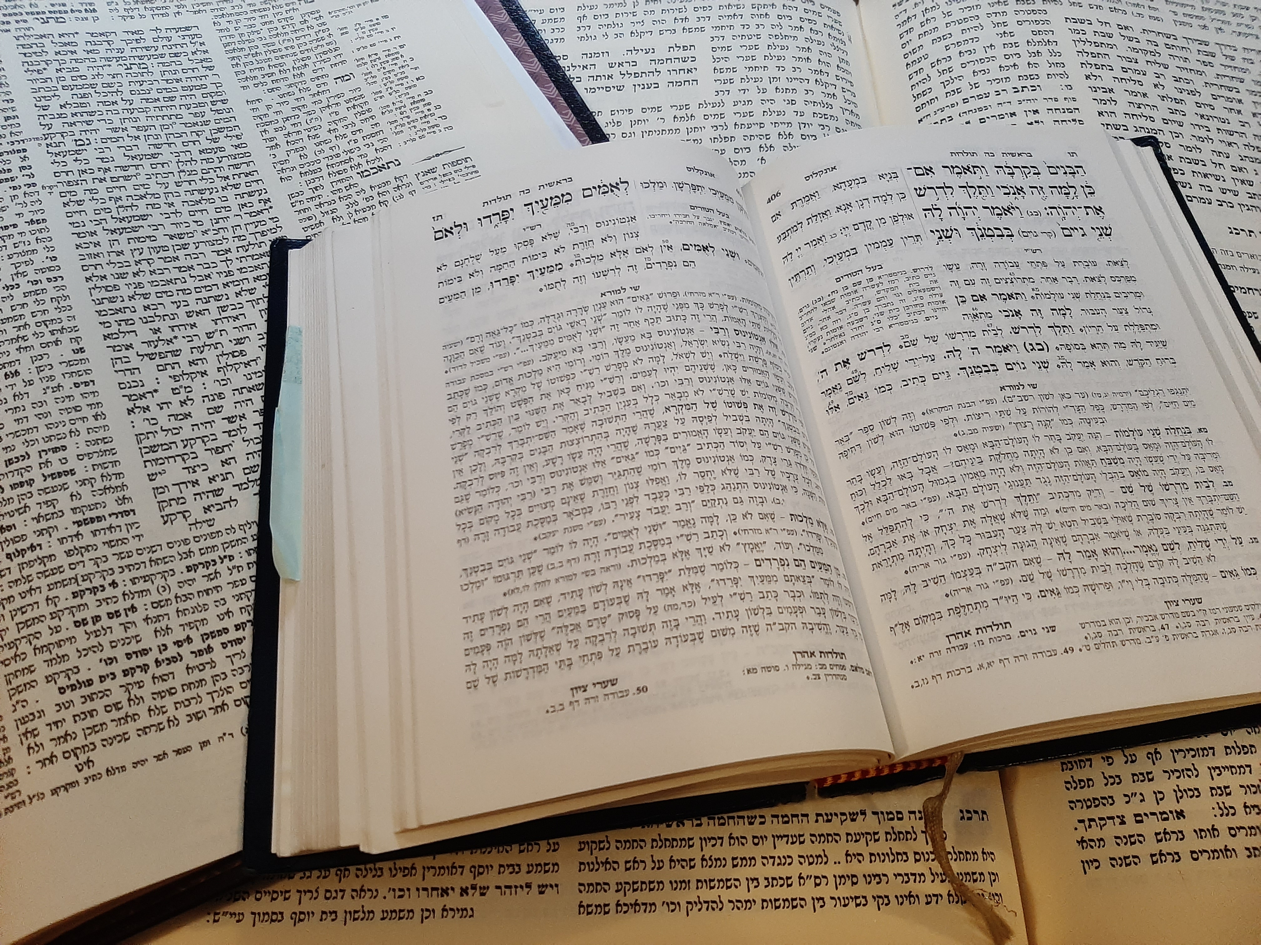 Cette méthode nous a relativement bien réussi, la culture juive poursuit son développement en dépit de tout. Que ce soit la Torah (Pentateuque) (au milieu de l’image), le Talmud (à gauche), ou les textes juridiques ( en haut à droite ), la mise en page de nos textes exprime clairement notre refus de la pensée unique, et notre ferme croyance dans le caractère essentiel de la pensée, de la culture, de l’éducation, et du respect des opinions de tous. Autour d’un texte central, lui-même souvent auto-critique, des commentaires de toutes époques se répondent, se contestent, s’enrichissent.