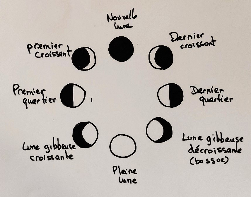 Connaissez-vous les 8 phases de la lune? Et leur rapport avec le judaĂŻsme? Vous l’avez devinĂ©, je fais allusion au calendrier lunaire, que le judaĂŻsme utilise. Le dĂ©but de chaque mois juif coĂŻncide avec la nouvelle lune, les 3 fĂȘtes de pĂšlerinage se dĂ©roulent au moment de la pleine lune, et l’annonce de l’approche du nouveau mois se fait le Chabat qui tombe au moment de son dernier quartier. On appelle ce dernier Chabat du mois, « chabat mĂ©varHim », « chabat oĂč l’on fait la bĂ©nĂ©diction » et ce chabat tombera justement les 14 et 15 novembre, chabat prochain. Comment le savoir? Vous pouvez soit consulter le site hebcal ici soit regarder la lune: si elles est « bossue » (gibbeuse dĂ©croissante) ou dans son dernier quartier, le chabat Ă venir est chabat mĂ©varhim (voir dessin) et le chabat suivant est le premier chabat du mois. Ce sont ces deux chabatot que nous cĂ©lĂ©brons en prĂ©sentiel cette annĂ©e Ă YĂ©tsira, on est en train de mettre tout cela en place. Donc, ce chabat, nous aurons le programme spĂ©cial de Chabat mĂ©varHim avec un prĂ©sentiel intensif, vendredi soir, samedi matin et samedi aprĂšs-midi. Comme nous faisons les trois offices, nous les cĂ©lĂ©brons en mode « friendly » dans une version un peu plus courte sur les Ă©lĂ©ments mineurs.