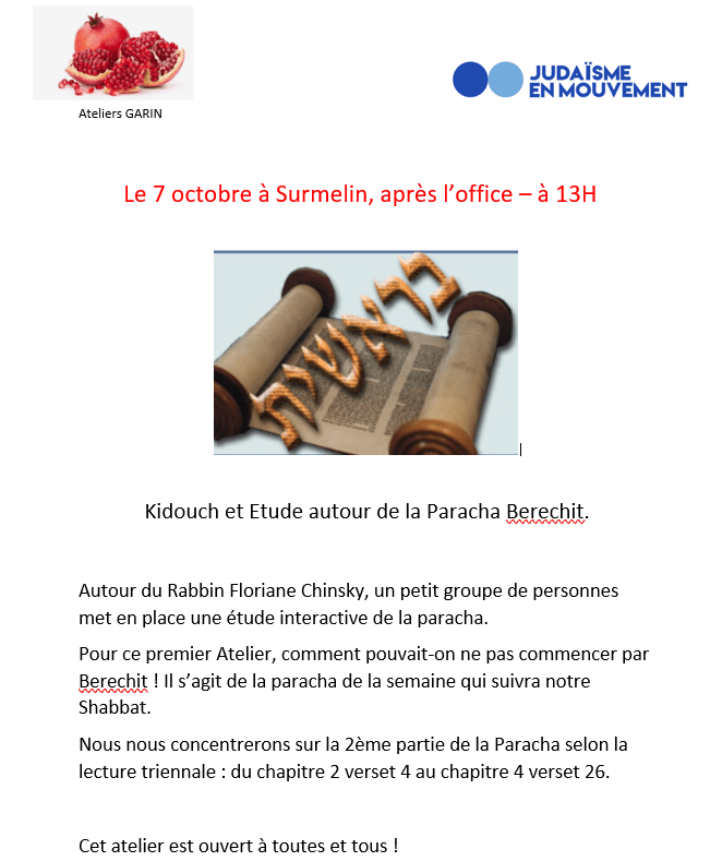 Nous étudierons en format intergénérationnel à 10h, notre office inclura une nomination et la lecture de Béréchit le tout début de la Torah à 10h30, je vous prépare une étude de soutien dans les moments difficiles à 13h et nous chanterons avec la chorale de roch Hodech à 14h. Venez quand vous voulez, comme vous voulez.